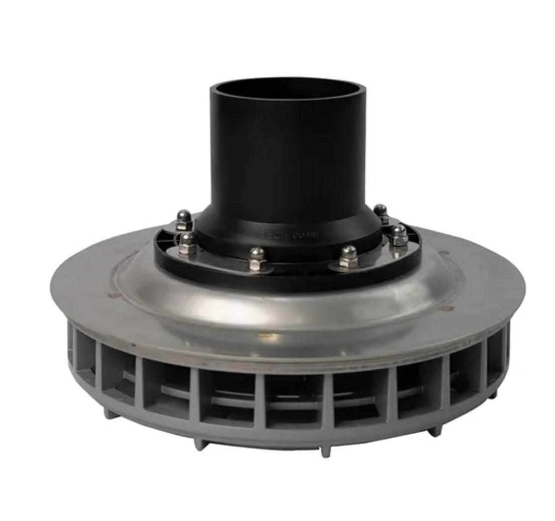 Phễu thu nước siphonic hiệu suất cao, làm bằng thép không gỉ 304. Thiết kế khí động học giúp tối ưu hóa dòng chảy, ngăn rác và giảm tiếng ồn khi thoát nước mái.